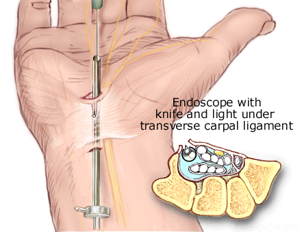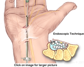 a ½" incision in the patient's palm or wrist. A fiberoptic camera