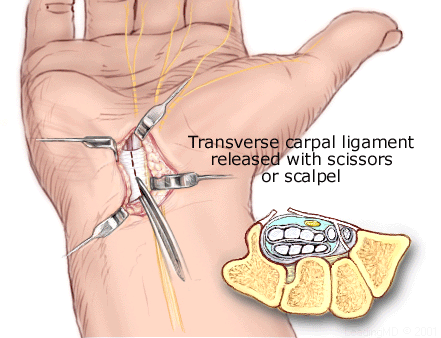 carpal ligament, which can then be released with a special knife.